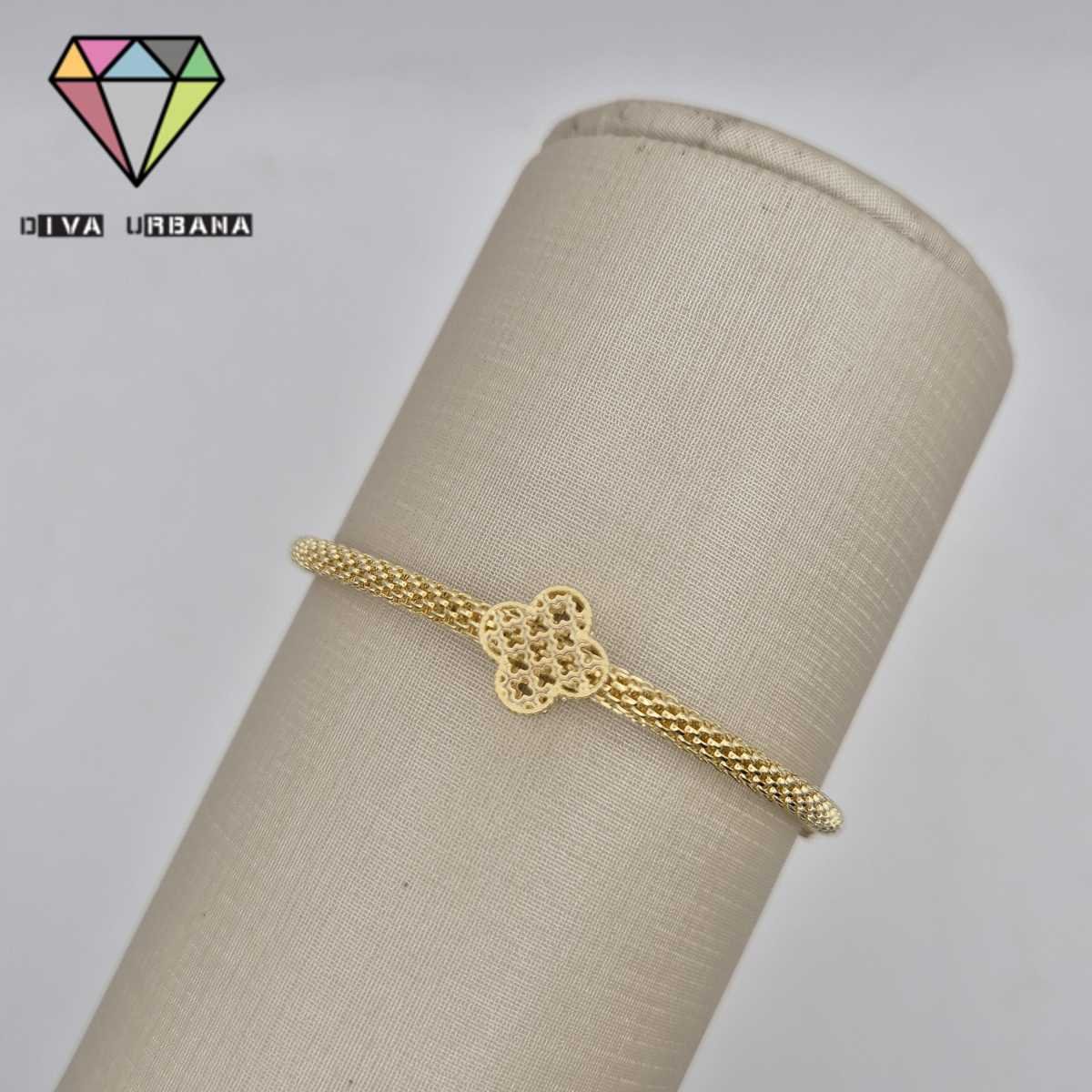P2111 PULSEIRA DOURADA TRAMA ITALIANA TREVO DOURADO