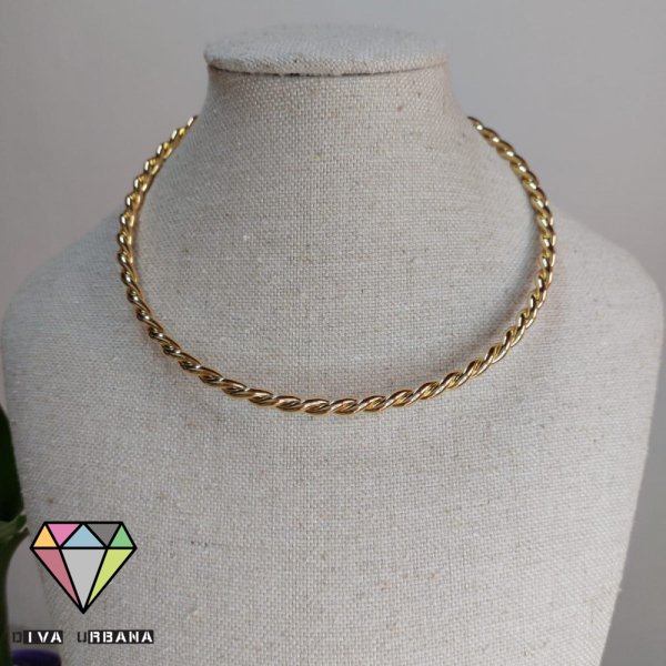 CH0284 CHOKER ELO AMERICADO TREVO LAVANDA INSP ALTA JOALHERIA
