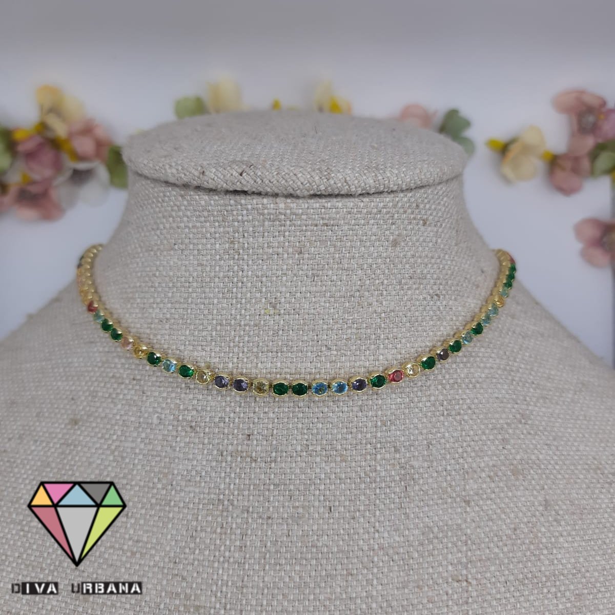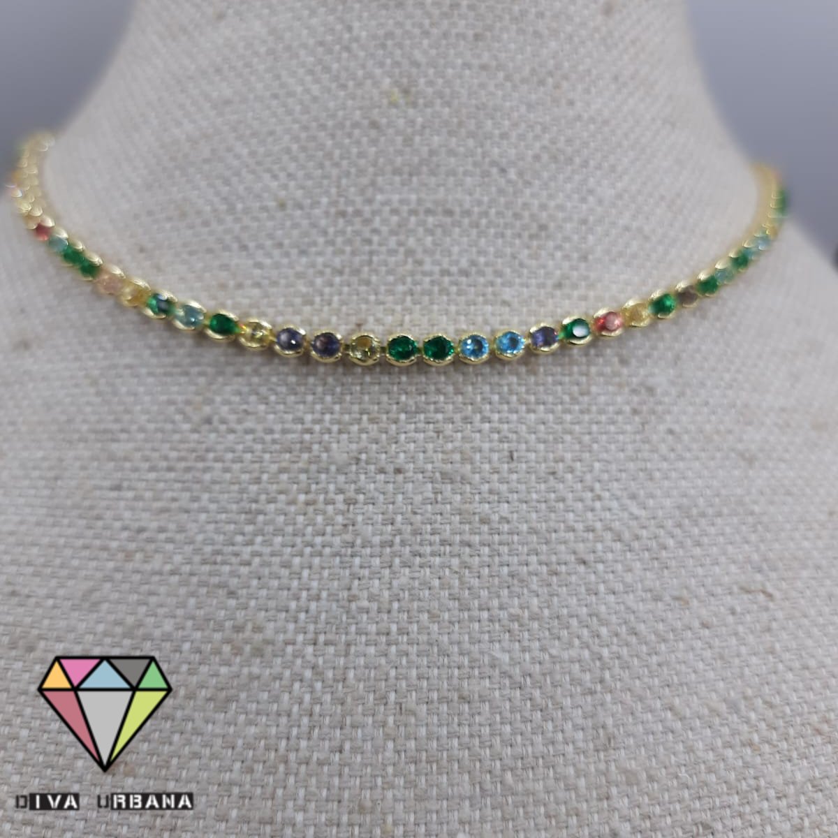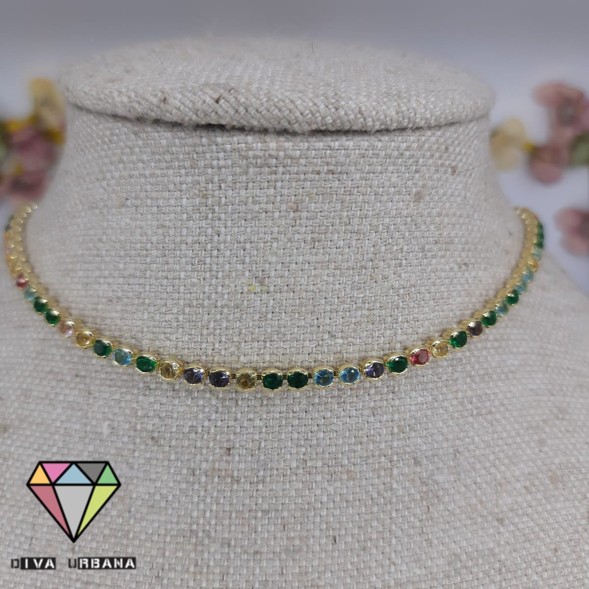 CH0065 CHOKER RIVIERA CRAV ZIRC COLORIDAS REDONDINHAS