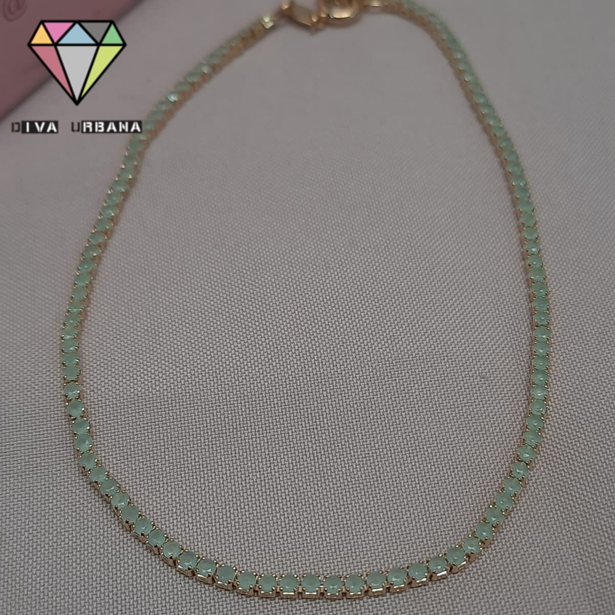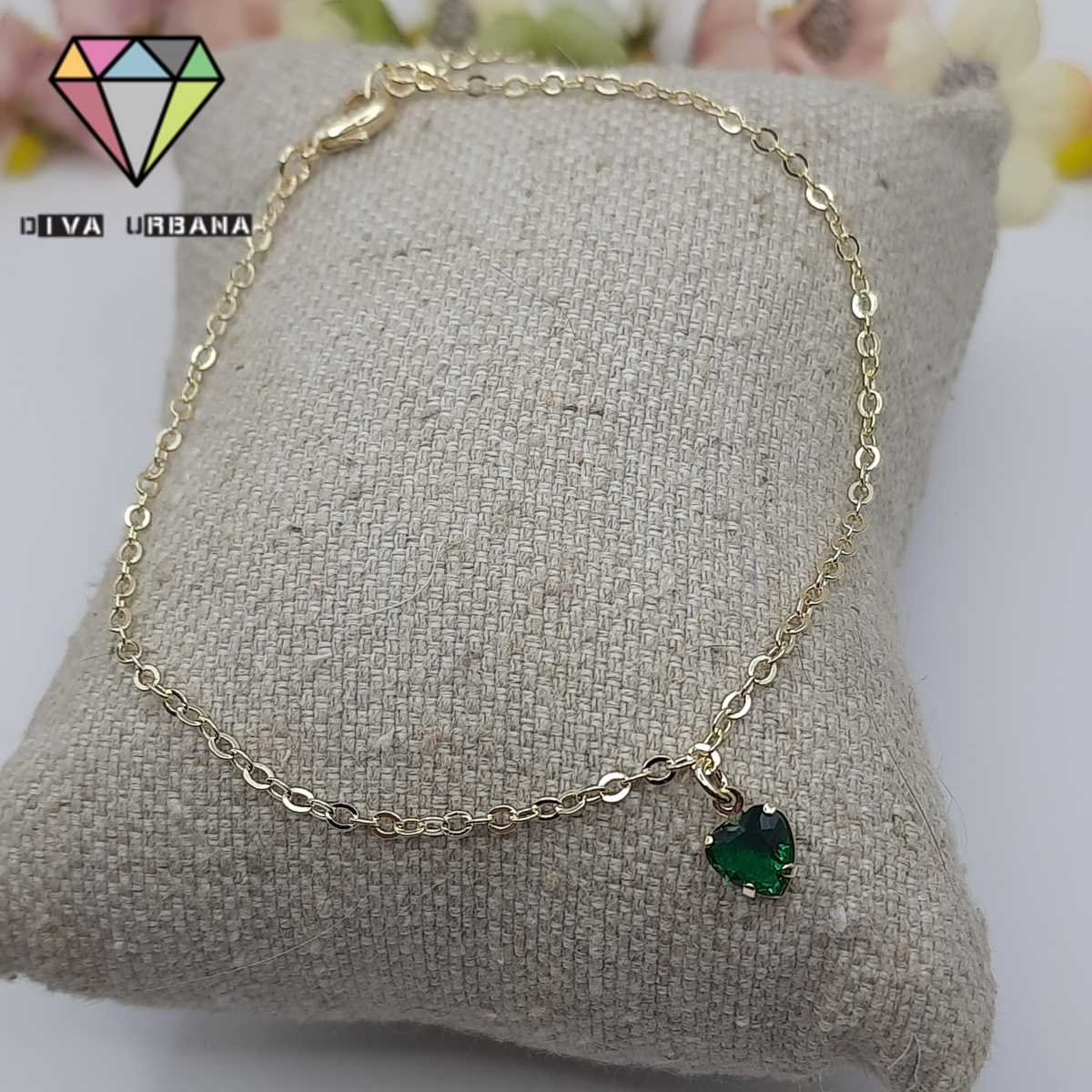 T0246 TORNOZELEIRA ELO AMERICANO PEDRA CORACAO VERDE BANDEIRA