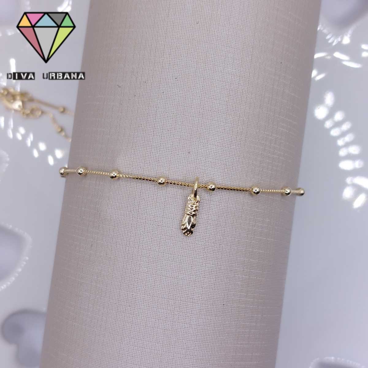 T0317 TORNOZELEIRA ELO VENEZIANO BOLINHAS PINGENTE FIGA