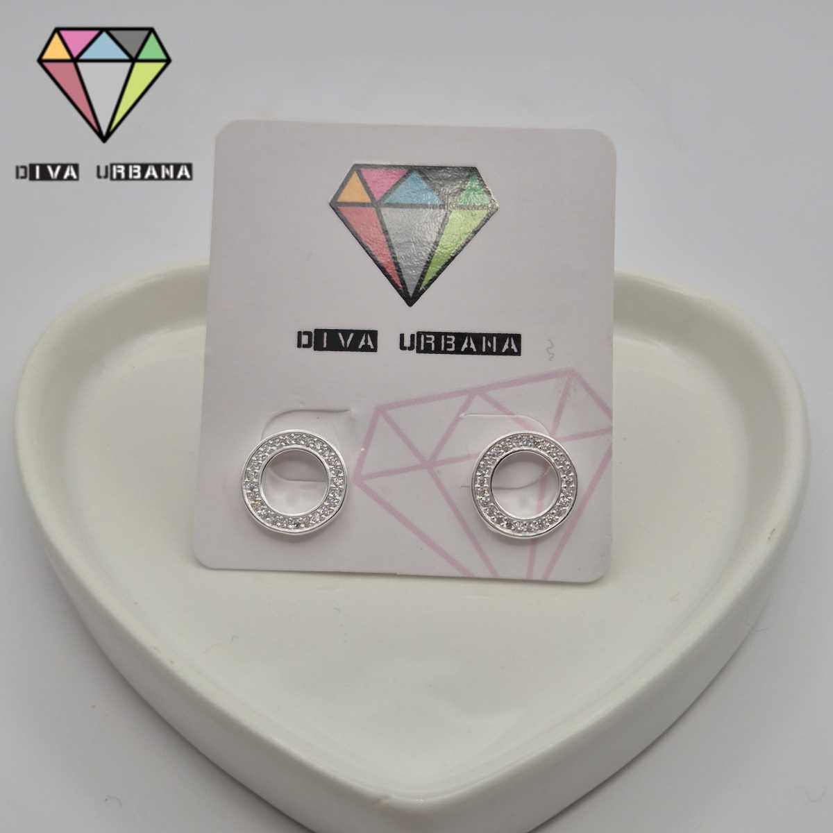 B7797 BRINCO PINO BANHADO A PRATA CIRCULO VAZADO CRAV ZIRC CRISTAL