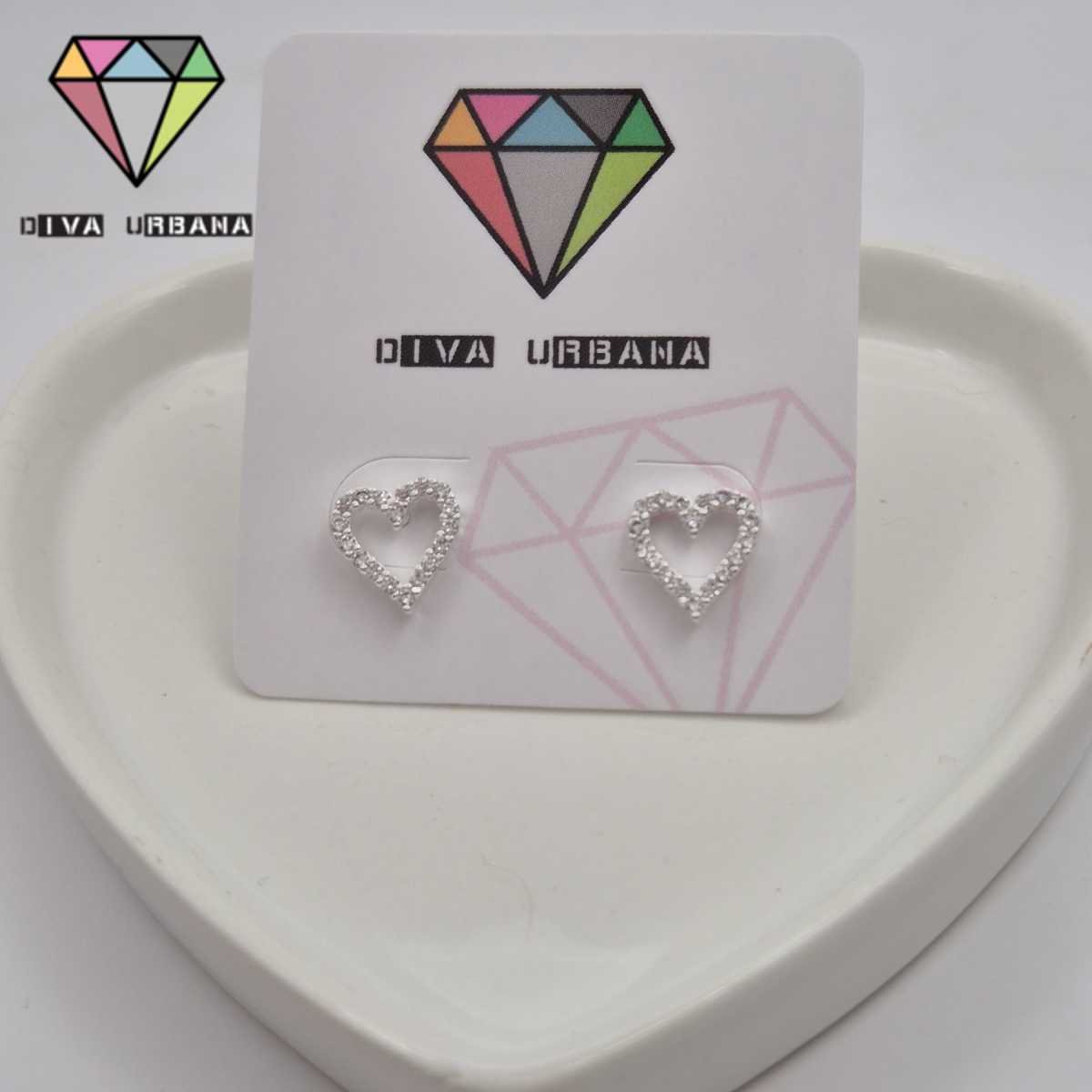 B7907 BRINCO PINO BANHADO A PRATA CORACAO VAZADO CRAV ZIRC CRISTAL