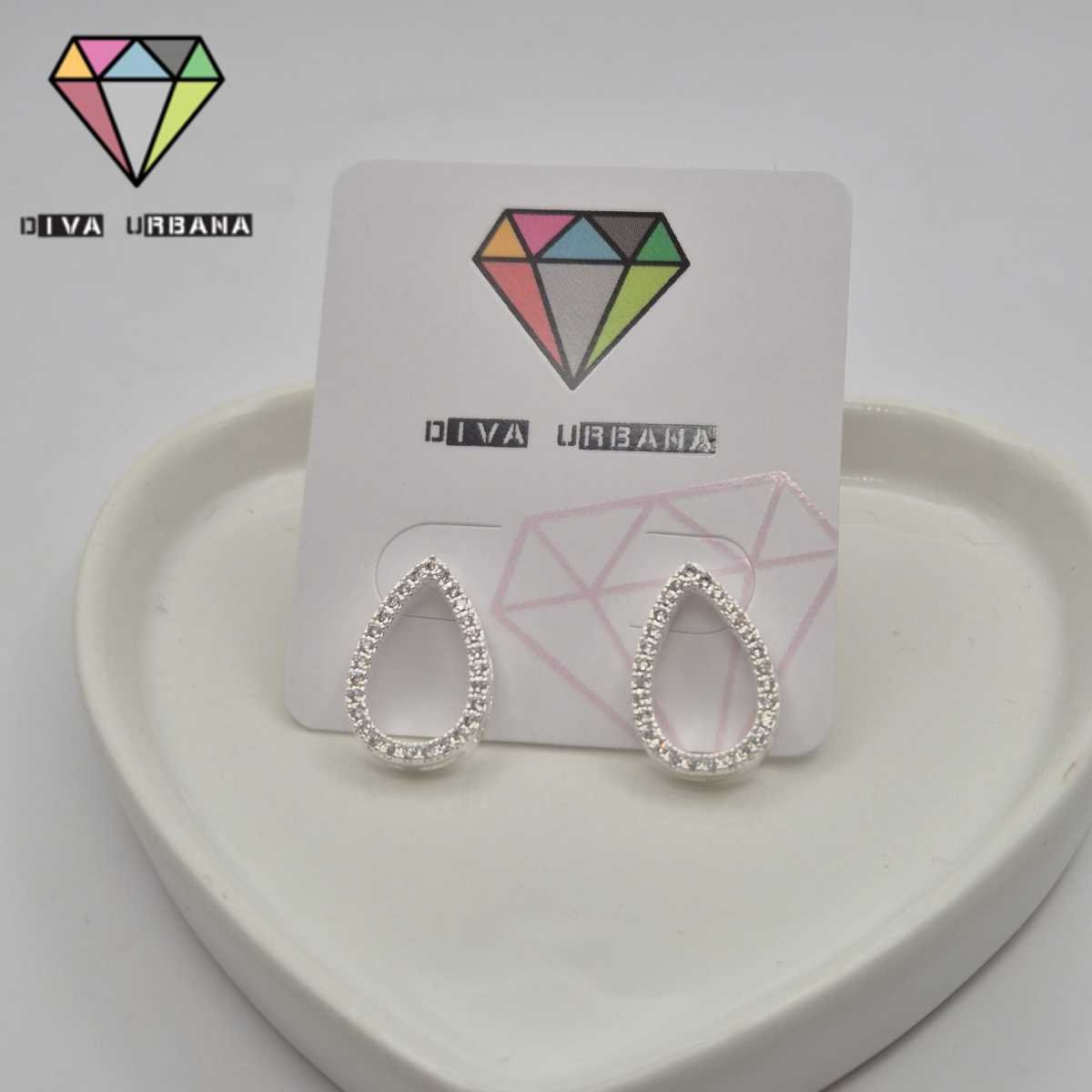 B7958 BRINCO PINO BANHADO A PRATA GOTA VAZADA CRAV ZIRC CRISTAL