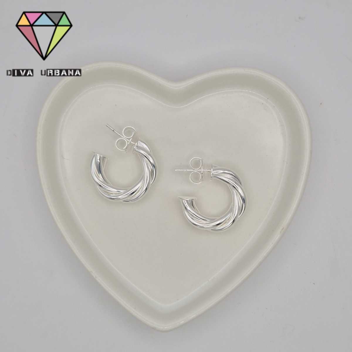 B8331 BRINCO PINO ARGOLA TORCIDA BANHADA A PRATA