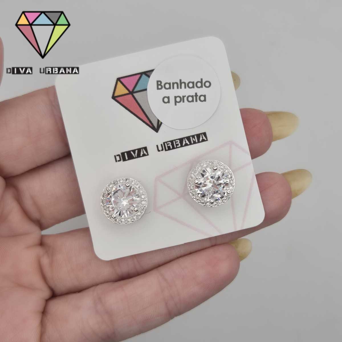 B8761 BRINCO PINO BANHADO A PRATA CIRCULO CRAV ZIRC CRISTAL