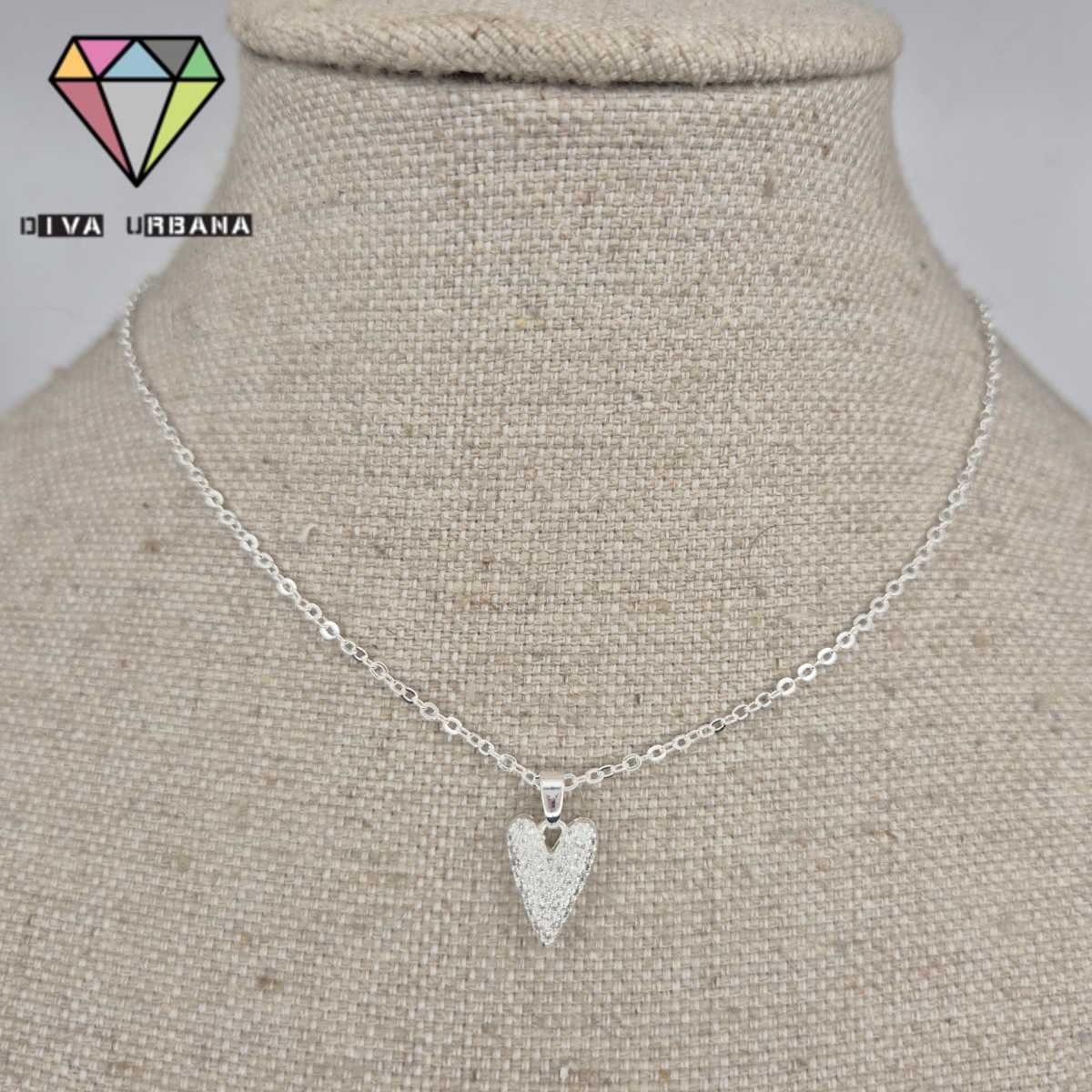C4368 COLAR BANHADO A PRATA ELO AMERICANO CORACAO ALONGADO CRAV ZI