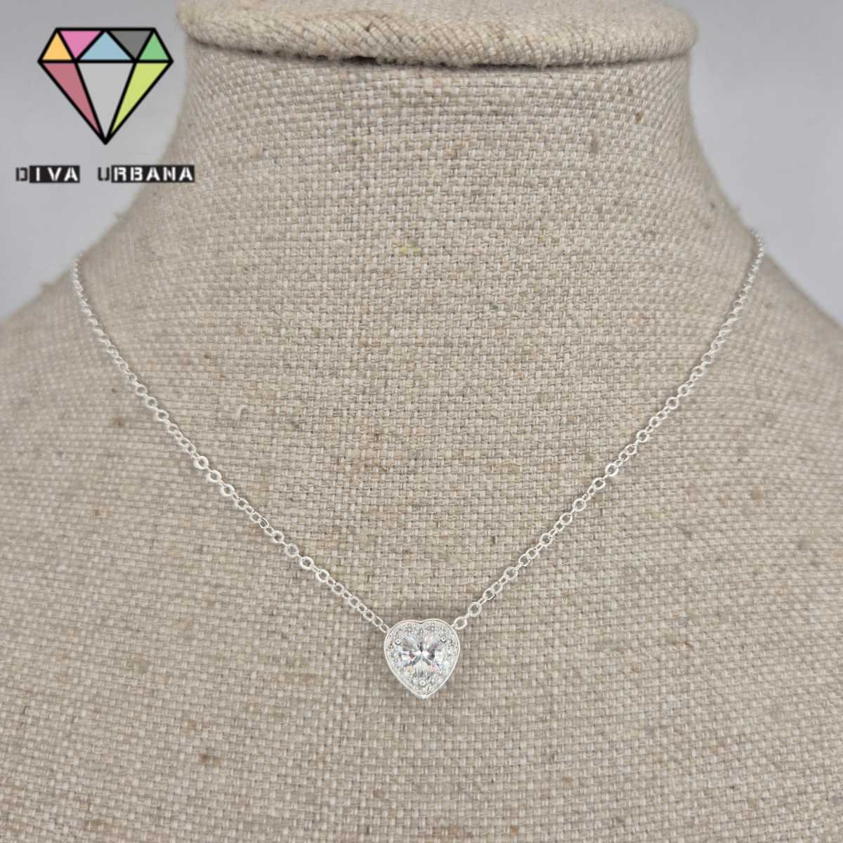C4378 COLAR BANHADO A PRATA CORACAO COM PEDRA CORACAO CRAV ZIRC