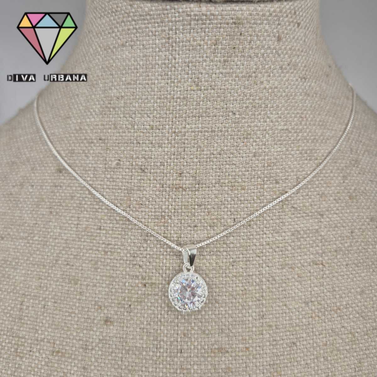 C5007 COLAR BANHADO A PRATA ELO VENEZIANO CIRCULO CRAV ZIRC CRISTA